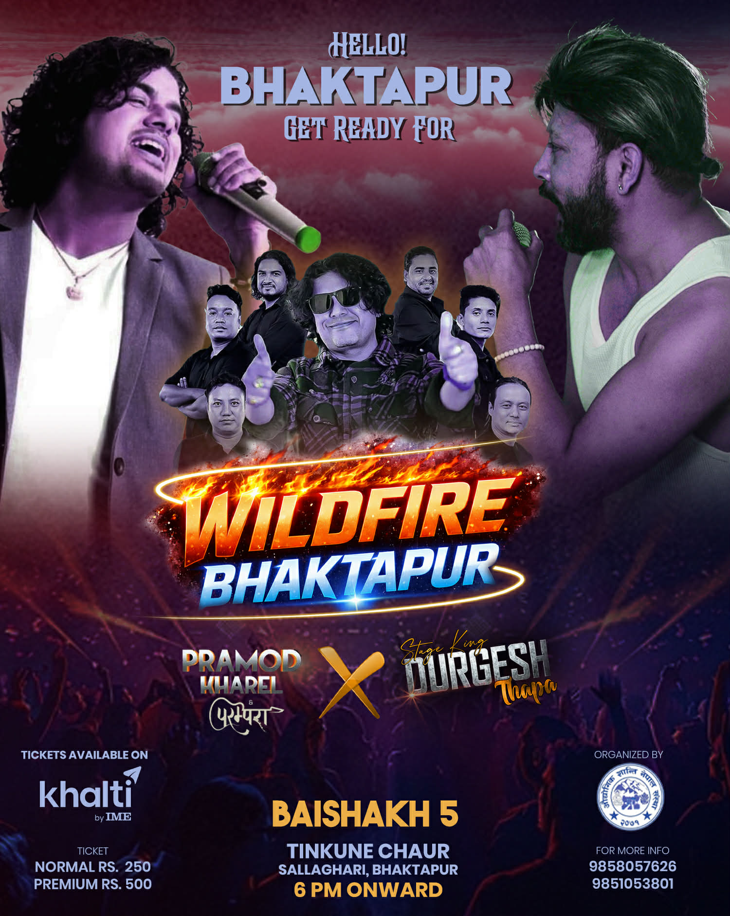 महात्सवकै अबसरमा भोली शनिवार साँझ प्रमोद खरेल एण्ड परम्परा ब्याण्ड र दुर्गेश थापाको प्रस्तुती रहने गरि भक्तपुर वाइल्ड फायर नाइट  आयोजन गर्ने भएको आज संस्थाका अध्यक्ष महतले जानकारी दिनुभयो ।  कन्सर्टमा दुश्मन हेरेको हेरैलगायतका दर्जनौ चर्चित गीत गाएक थापा र चर्चित गायम खरेल एण्ड परम्परा ब्याण्डको भव्य प्रस्तुती रहने उहाँले जानकारी दिनुभयो ।